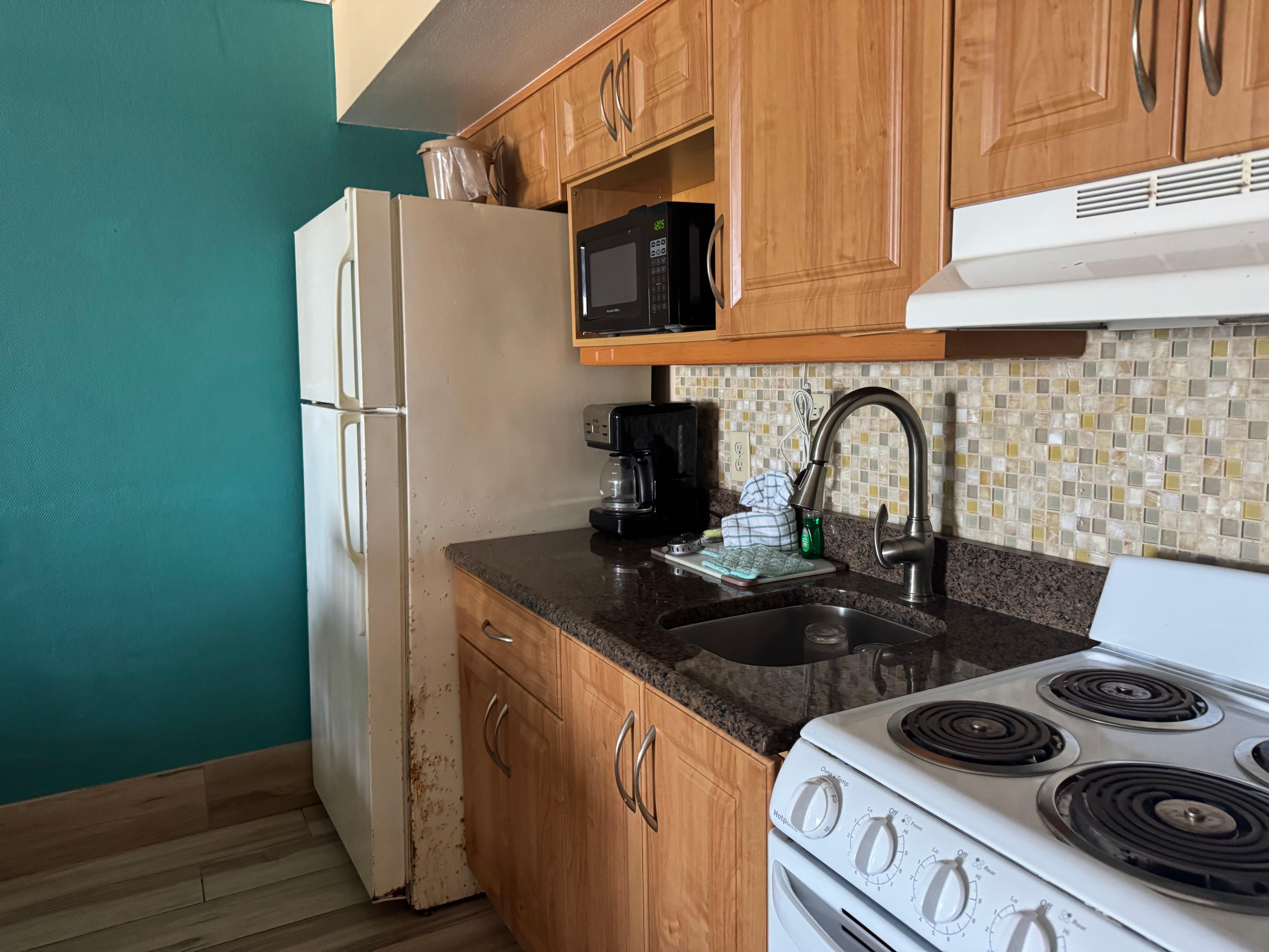 Chambre, 2 grands lits, cuisine, en front de mer (Accessible)