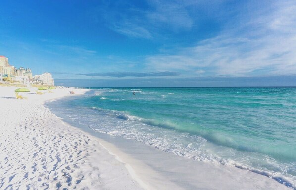Besides being right on the lake (no power boats allowed, but we have some fun stuff!), you'll also be a short 5 minute walk from the most beautiful beaches! Guests have access to our 6-seat golf cart for cruising the area (liability waiver required), and boat rentals are available in Destin Harbor close by (any boat rentals are not included in your rental). There are dozens of great restaurants within a few miles to please everyone's taste buds! Guests will also have access to the Destiny West clubhouse, with it's huge, beautiful pool, gym, tennis and pickleball court, etc...all just a short half-block away!