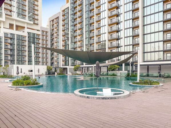 C’est dans le quartier Meydan à Dubaï que vous trouverez cet appartement. Les célèbres Centre commercial Dubai Mall et Centre commercial Mall of the Emirates valent le détour si une mission shopping est à l'ordre du jour. Vous préférez vous poser et apprécier la beauté naturelle des lieux ? Partez à la découverte des tout aussi sympathiques Dubai Creek et Plage de Jumeirah. Lors de votre séjour, ne manquez pas les incontournables Aquarium et zoo sous-marin de Dubaï et Global Village.