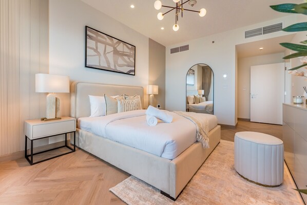 Upgraded 1BR Facing PalmJumeirah & SeaViews fr. LivingtoBedroom, Elite Residence