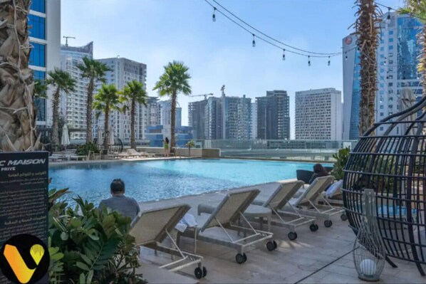 Chic Studio Apt with Dubai Canal and Pool View