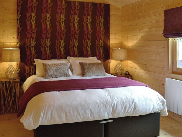 Salle de bain: Avec baignoire, toilette et sèche-serviettes. . Chauffage central électrique, électricité, draps, serviettes et Wi-Fi inclus. Voyage lit et chaise haute disponibles sur demande. Pack de bienvenue .. Petit jardin clos avec pelouse avec terrasse, meubles de jardin et barbecue. Jacuzzi pour 6 personnes (privé). 2 chiens bienvenus, à garder en laisse à tout moment. Magasin de vélo. Parking privé pour 2 voitures. Ne pas fumer. . Cette charmante cabane en rondins a été soigneusement aménagée pour offrir une atmosphère chaleureuse et accueillante, avec suffisamment de place pour toute la famille. Dans le jardin, sur une véranda couverte, vous trouverez le merveilleux bain à remous, lieu idéal pour se détendre en fin de journée, avec vue sur le charmant jardin clos. Les deux chambres offrent la flexibilité de deux lits jumeaux qui peuvent être transformés en lits super king-size (sur demande). Les propriétaires ont soigneusement fourni des articles de toilette gratuits si vous oubliez les vôtres!