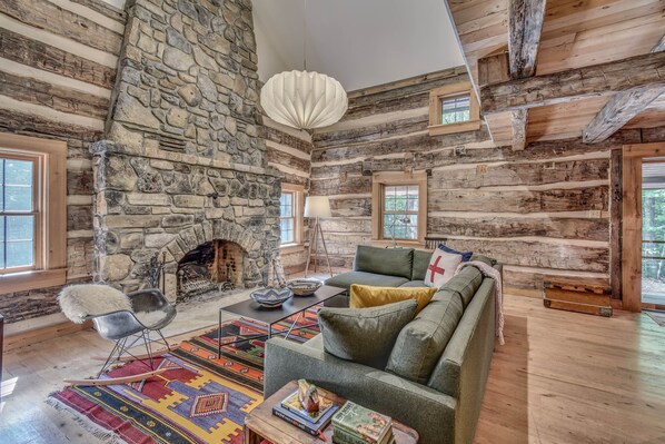 La chambre principale a un lit queen et une salle de bain en marbre et calcaire récemment rénovée avec une douche extra large. La deuxième chambre (à l'étage) a trois lits jumeaux, dont deux avec des lits gigognes. Cette chambre peut accueillir cinq personnes. Il y a aussi une salle de bain complète attenante, récemment rénovée. Au rez-de-chaussée, vous trouverez un salon avec foyer au bois et téléviseur à écran plat avec collection de DVD, une cuisine entièrement équipée, deux vérandas grillagées, une salle d'eau et une véranda pour se détendre. À l'extérieur, les clients auront accès à un gril à gaz, un parcours de cordes, des vélos pour enfants, un panier de basket, une gamme de jeux de jardin, un foyer et cinq hectares de bois à explorer.
