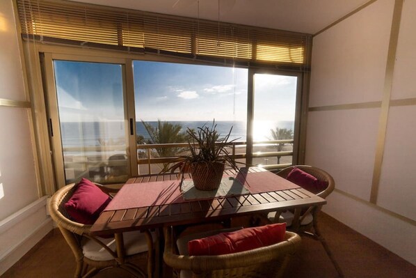 Relájate y desconecta en este cómodo estudio con vistas a playa Muchavista. Capacidad para 2 personas, dispone de una amplia terraza donde disfrutar del mar en cualquier momento del día.