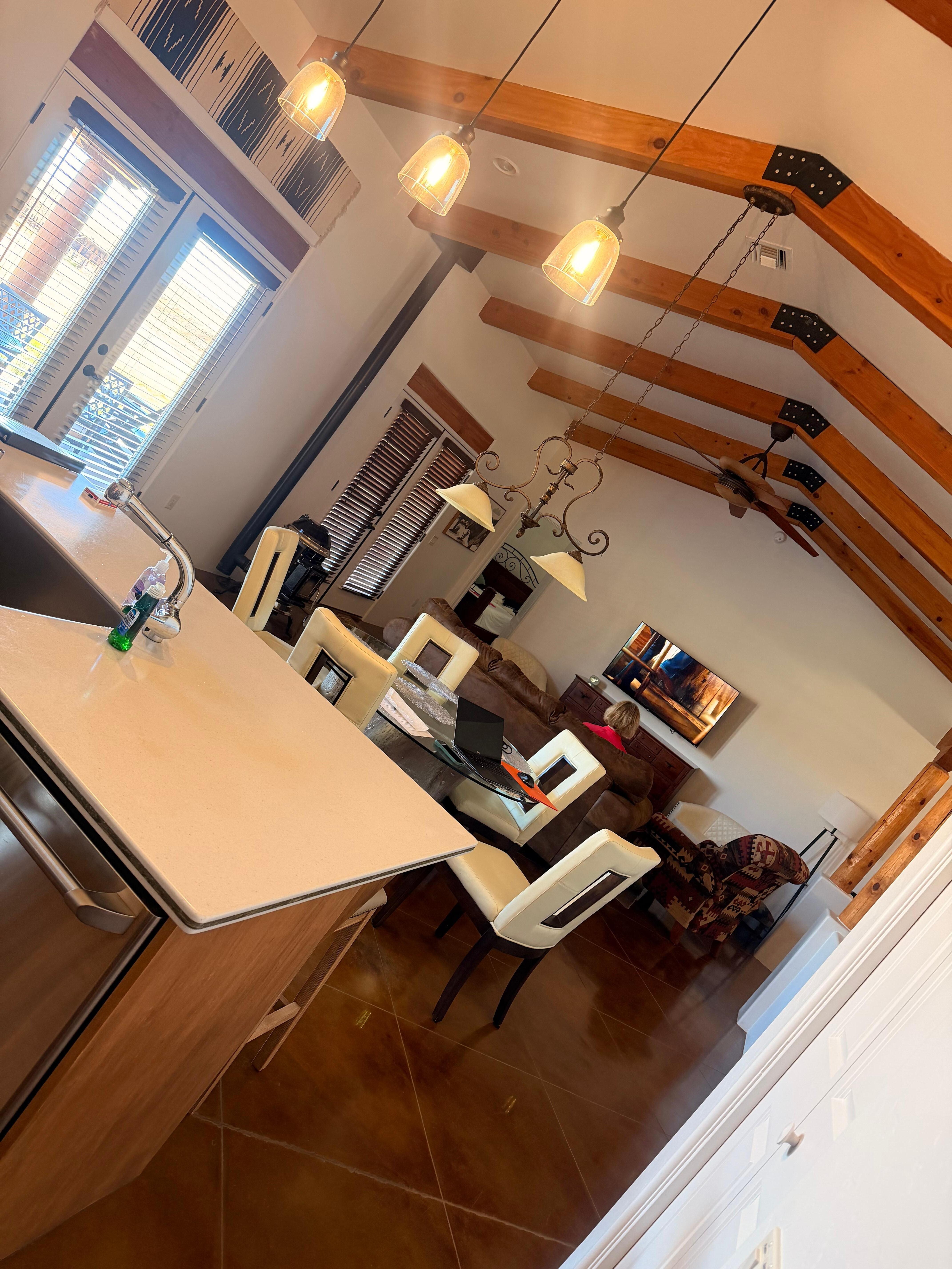 We want this to be your home away from home so we have provided crisp linens, cozy throw blankets, plenty of towels, and a tv in every room. We also provide laundry soap for the in-home washer and dryer, as well as cleaning supplies. The two-car garage is extra deep to accommodate most vehicles. A desk with power supply is perfect if you ’re working from your home away from home.