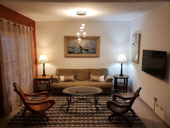 - Accès libre - L'appartement est à seulement 2 pâtés de maisons de la Calle Primera (aucun problème de bruit) - Parking gratuit dans les locaux - Séjour avec une télévision Chromecast pour diffuser votre contenu favori directement depuis votre smartphone - Salle à manger pour 5 - La cuisine est entièrement équipée avec un four, une cafetière Keurig, un jus d'orange vintage mexicain (les oranges ne sont pas garanties) - 2 chambres privées avec des lits confortables qui vous assureront une bonne nuit de sommeil - 2 salles de bain complètes - Blanchisserie complète