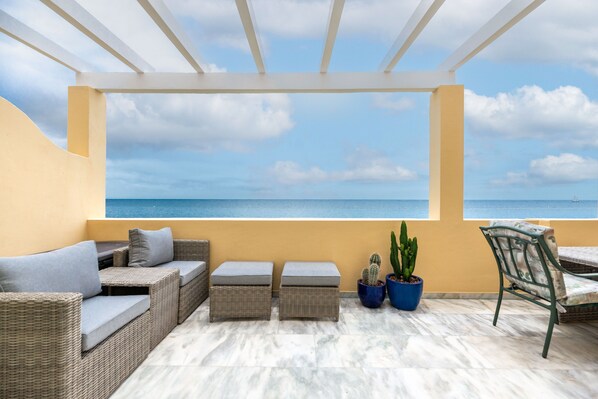 La plage se trouve directement devant l'appartement.