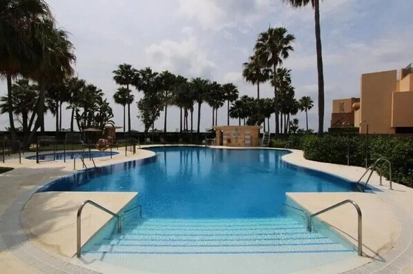 Sur la plage et les pieds dans le sable, cet immeuble se trouve dans le secteur de Nouvelle Mille d'Or à 5 minutes de marche de sites comme : Plages de la Province de Malaga et Plage El Padrón. Plage de Arroyo las Cañas-Velerín et Palais des congrès et centre d'expositions d'Estepona se trouvent également à moins de 2 km de distance.