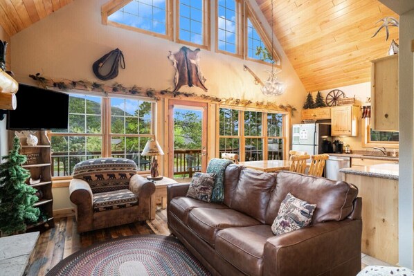 Like nearly all homes in Estes, this cabin has no air conditioning. Premium portable fans are provided, and refreshing mountain breezes cool things down quickly each evening.