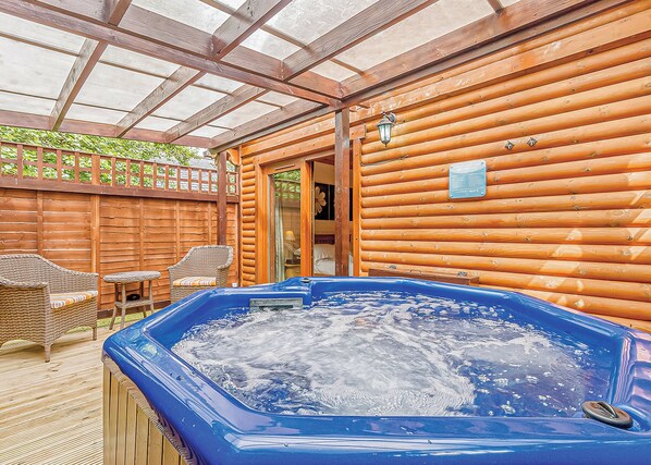 Stunning lodge with one double with en suite sauna and bathroom with luxurious bath and overhead shower. Ultra-modern open-plan living space featuring a stylish lounge and spacious modern kitchen and dining area. Patio doors leading to secluded decking with outdoor hot tub. Perfect for a romantic getaway.