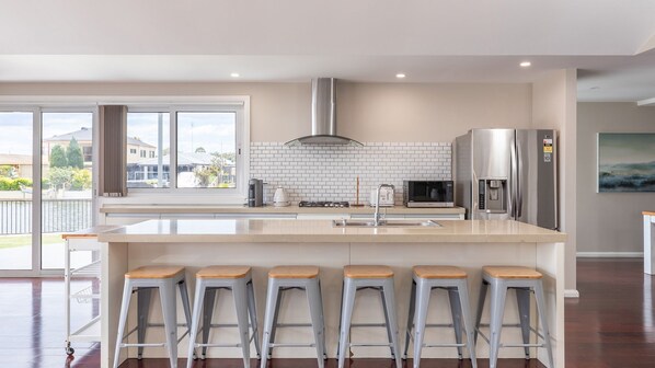 Right on the water, this incredible high quality home has its own jetty onto the river to moor your boat at, do some casual fishing or jump in for a swim. Enjoy the indoors as well with modern furnishings, air conditioning and wifi to help keep you connected in this large open plan house with plenty of room for everyone.