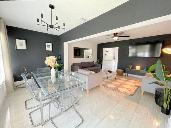 - 2 Living rooms with sofas and chairs and streaming TV's