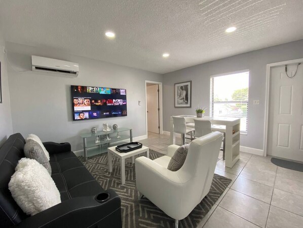 Transportation is required for shopping, dining, and entertainment. However, delivery is available if you choose to dine in and there are two large flat screen