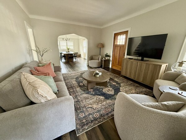 This location was perfect size for our group! Beautifully renovated house, in a nice neighborhood, close to free shuttle. Each room could use a rug and maybe some local pictures in the walls, therefore taking away the echos in each room . One room facing the street didn’t have a blind. Beds were very comfortable and bathrooms were beautiful, the furniture in each room was very nice. Thank you again for a great stay we will definitely stay again when in the area!