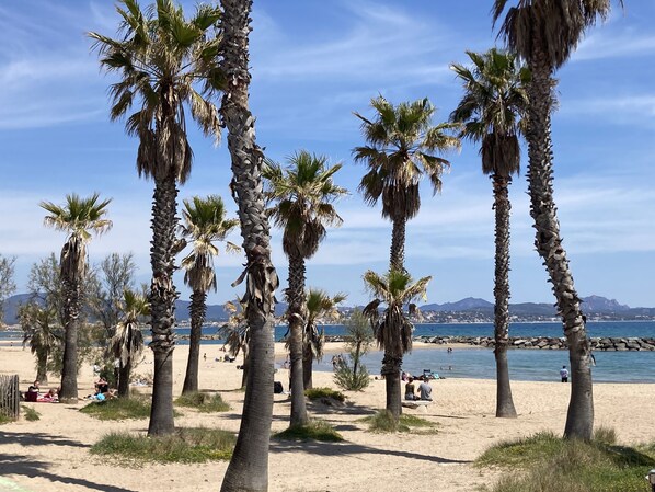 Plage à proximité, chaises longues