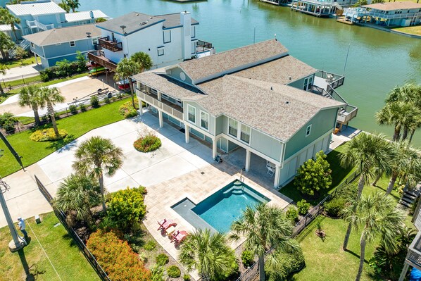 It's time to book your Bay Dream! This stunning canal home sets the stage for an unforgettable Galveston vacation rental experience. With a private pool, 2 living areas, 2 boat slips, a huge deck, and space to comfortably sleep 12 guests, this pet-friendly gem is perfect for large families or groups looking to get away and soak up the Texas sun.