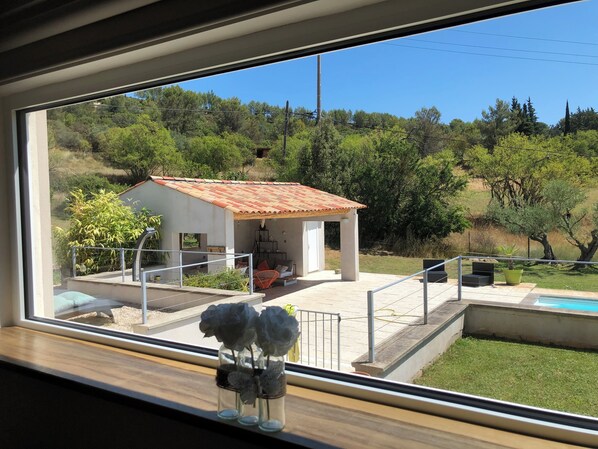 La villa est équipée d'un rafraichissement par le sol distribué par une pompe à chaleur. Cet équipement permet de maintenir une température et un rayonnement frais trés agréable.