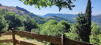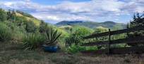 Belle terrasse ombragée face aux paysages d'Ardèche