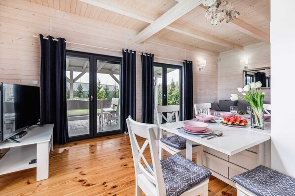 Self-service check-in and check-out guarantee complete freedom. This luxurious house with three spacious bedrooms and two bathrooms offers a comfortable stay for the entire family or group of friends. Located away from the hustle and bustle of the city, near the picturesque Lake Koprowo, it is the perfect place for a peaceful retreat surrounded by nature. The fully equipped kitchen includes a blender, sandwich maker, and electric grill, allowing you to prepare your favorite meals. Guests have access to a TV with Polish and German channels and a Smart TV. The garden features a barbecue and a children's playground, creating a space for communal relaxation. On-site parking ensures convenience and security. VAT invoices can be issued for your stay.