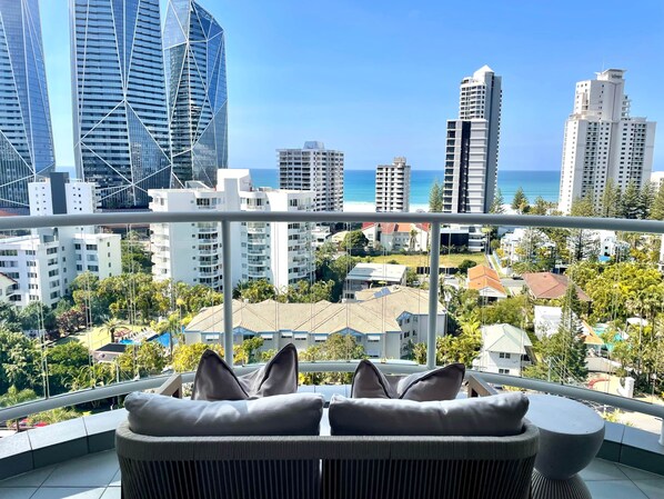 Nestled perfectly between Surfers Paradise and Broadbeach, just a stone’s throw away from the beach, this beautifully appointed hotel room on level 10, offers a serene escape with breathtaking ocean views by day and stunning views of the Jewel skyline at night. Conveniently situated just north of the bustling Broadbeach precinct, guests can indulge in a variety of premium dining options, cozy cafes, lively bars, and exciting shopping experiences, easily accessible via the light rail or on foot.