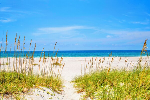 - Direct beach access with sparkling Gulf views