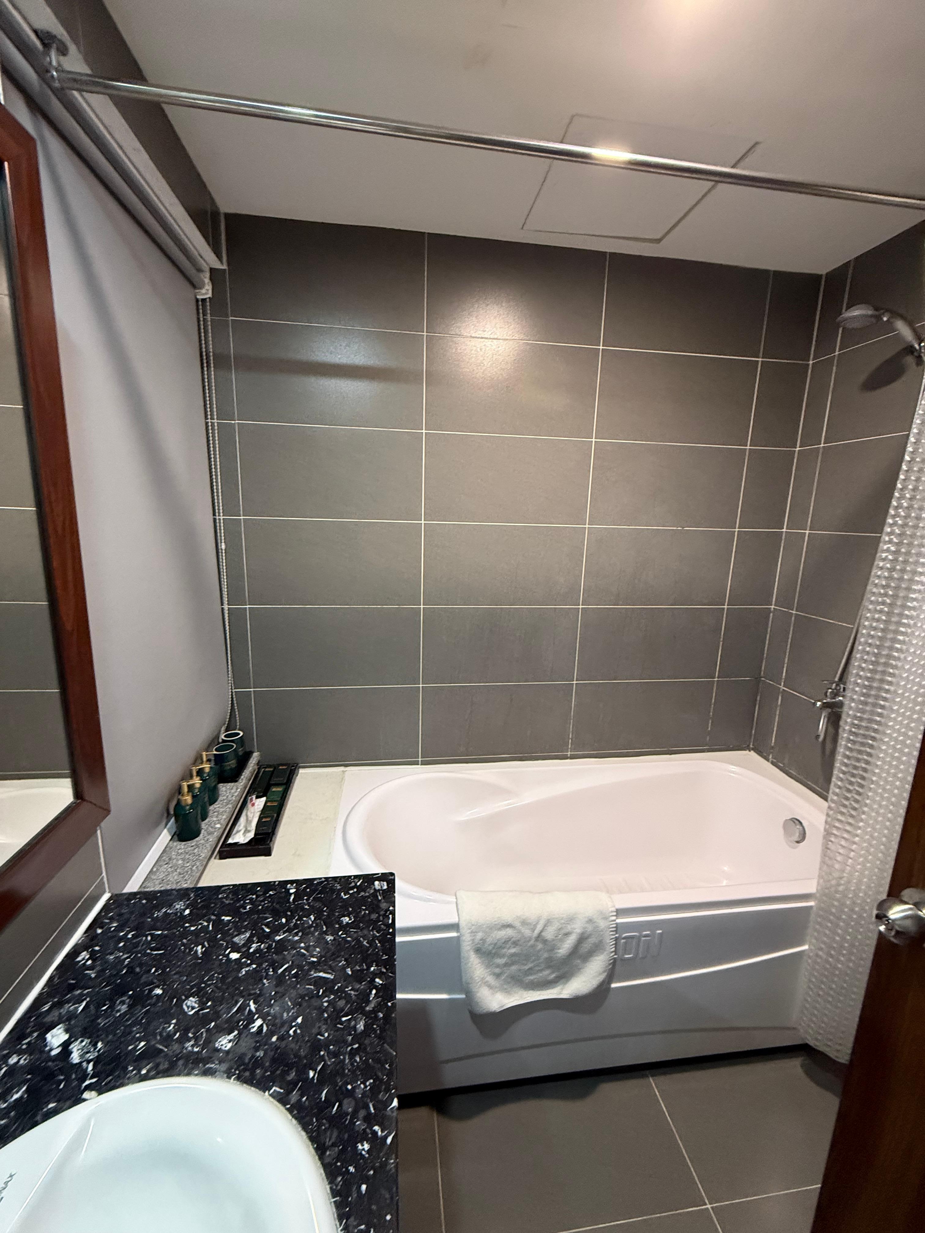 The hotel staff were all courteous and friendly. And the room service even refilled the bottled water everyday even when I was out by hanging them in a plastic bag by the door handle.