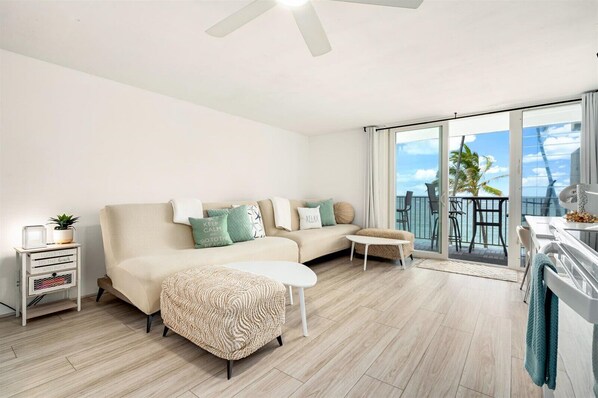 Escape to a tranquil beachfront condo perfect for families! This peaceful retreat boasts air conditioning, stunning ocean views from your private lanai, and the soothing sounds of the waves. Witness the magic of sleeping turtles on the beach and create unforgettable memories. Newly renovated in 2024!