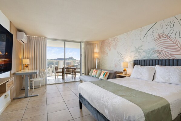 This stylish studio at Island Colony Hotel has everything you need for a short or extended stay, with beautiful partial views of the ocean, golf course, mountains, and city.