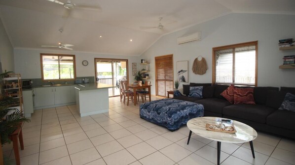 Kookaburra Lodge dispose d'un salon clair et aéré, cuisine combinée avec de hauts plafonds et de beaux meubles créant une expérience de vacances confortable, élégant et relaxant pour les couples, les petits groupes ou les familles. Entièrement clôturé avec un abri d'auto, la maison est parfaite pour une escapade d'un week-end ou un séjour plus long et s'adresse très bien pour les enfants et les animaux domestiques!