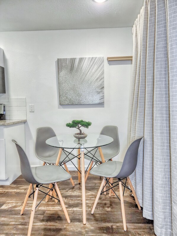 ★ LIVING ROOM ★ You will immediately be welcomed by the comfy futon sofa, modern decor, coffee table to set drinks and snacks on, and a smart TV, this living room will be your perfect spot to unwind after a day of exploring all Houston has to offer.