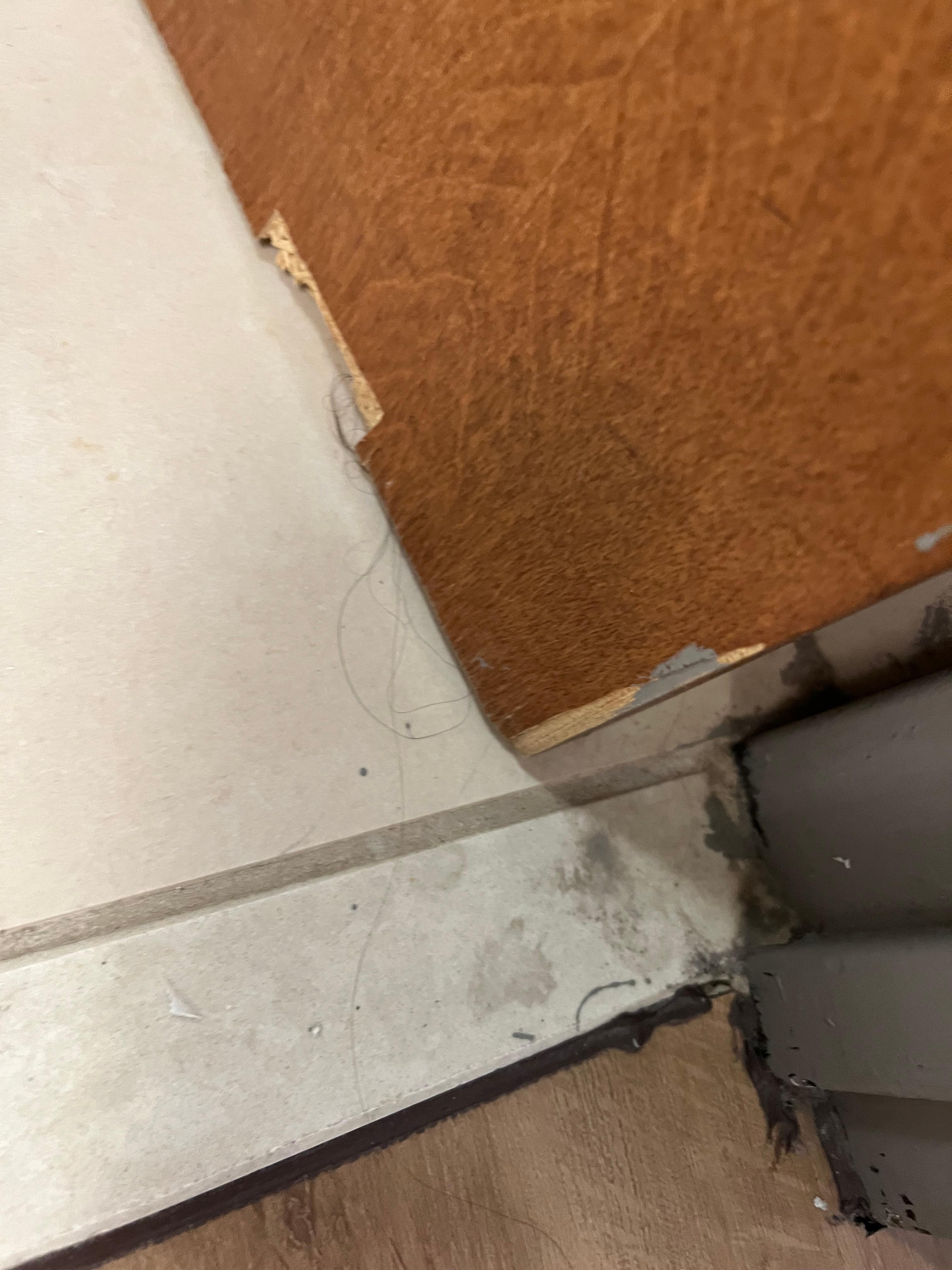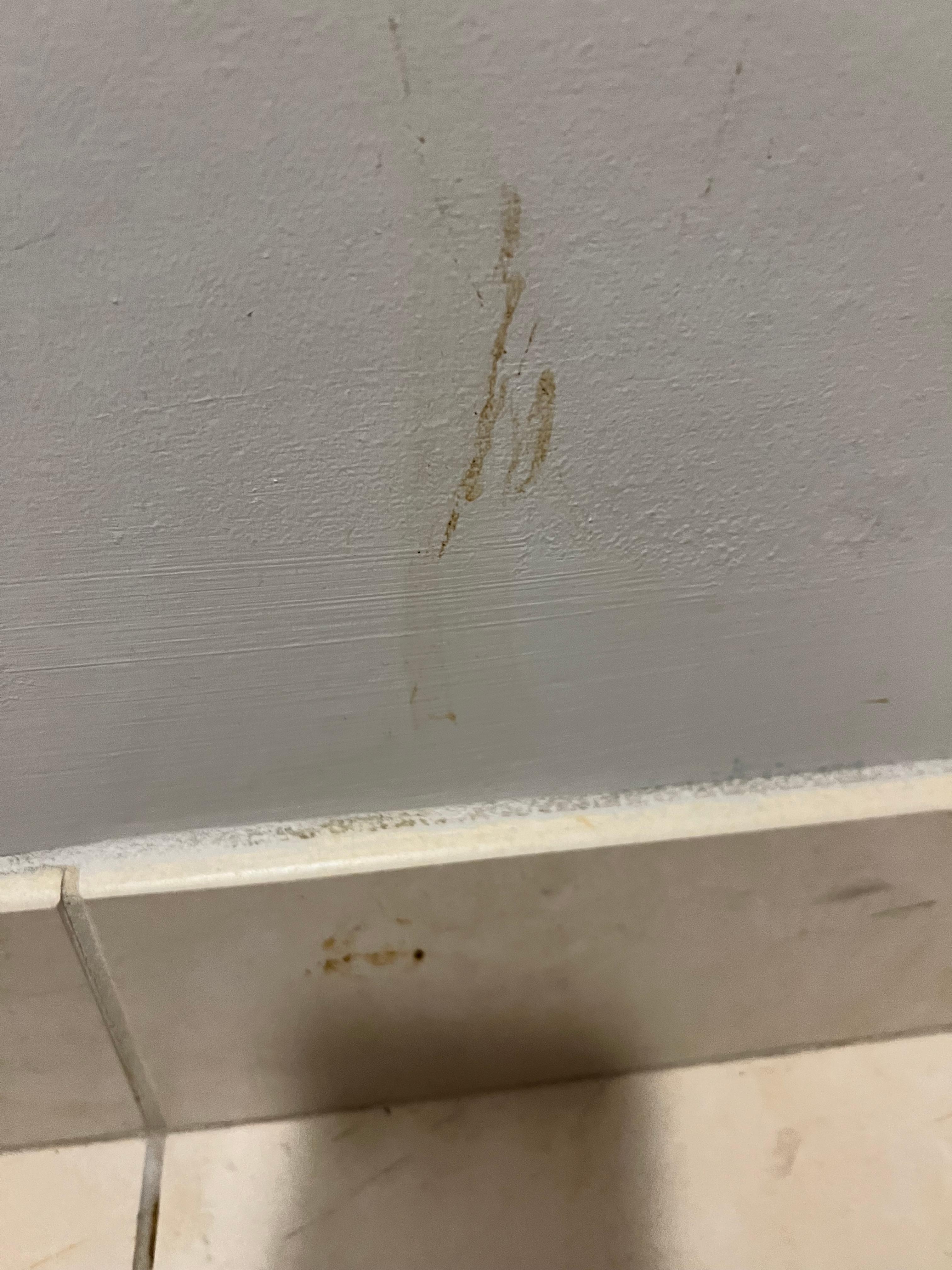 Dirty, worn room. Faeces on bathroom walls and hairs on mattress. Floor dirty/dusty. Coffee maker in room not fit for use; producing foul contaminated water. Curtains ripped with holes. Smell of marijuana throughout corridors.