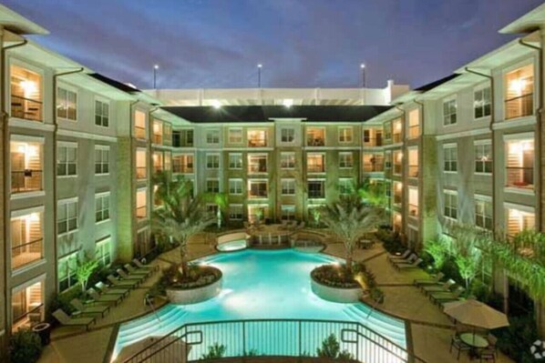 This spacious and gated 2 Bed/2 Bath has the best location in Houston, TX. This unique community offers you everything that you are looking for in comfortable, carefree living including a private patio. The unit has 5-star amenities like: Spacious walk-in closets, duvet covers and cozy pillows, High speed WiFi, All utilities included, Free parking and gym -Pool (availability depends on COVID19 laws), Smart TVs, Full kitchen with coffee maker, a microwave, toaster, etc and a Washer and dryer.