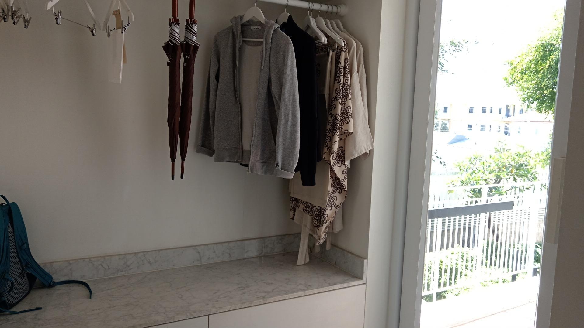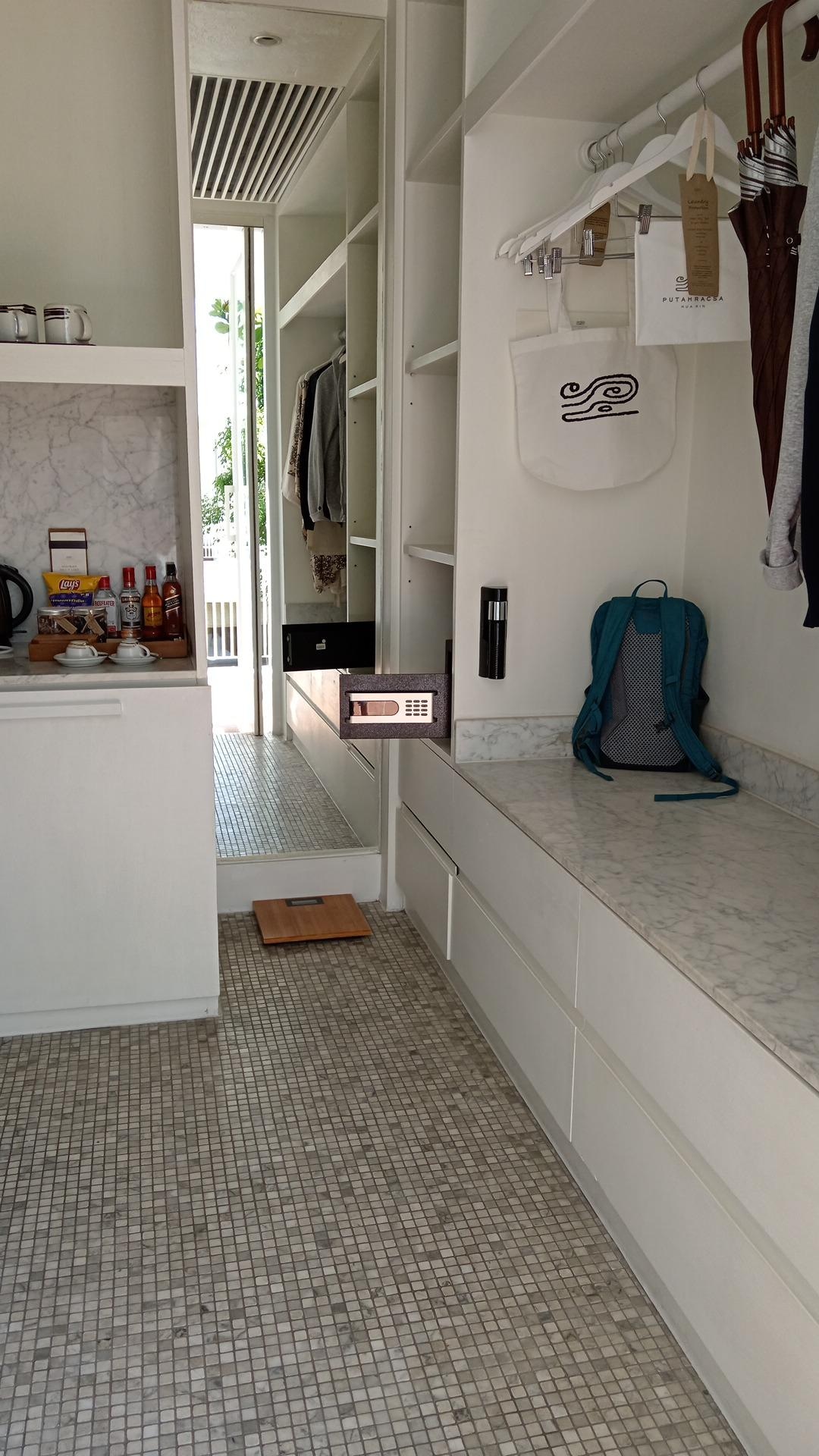 Garde-robe ou placard, réfrigérateur et cafetière/bouilloire