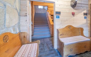 L’appartement chaleureux avec une ambiance authentique, vous offre une belle superficie de 90 m2 situé au rez-de-chaussée du chalet avec terrasse extérieur et table confortable extérieur l’été.