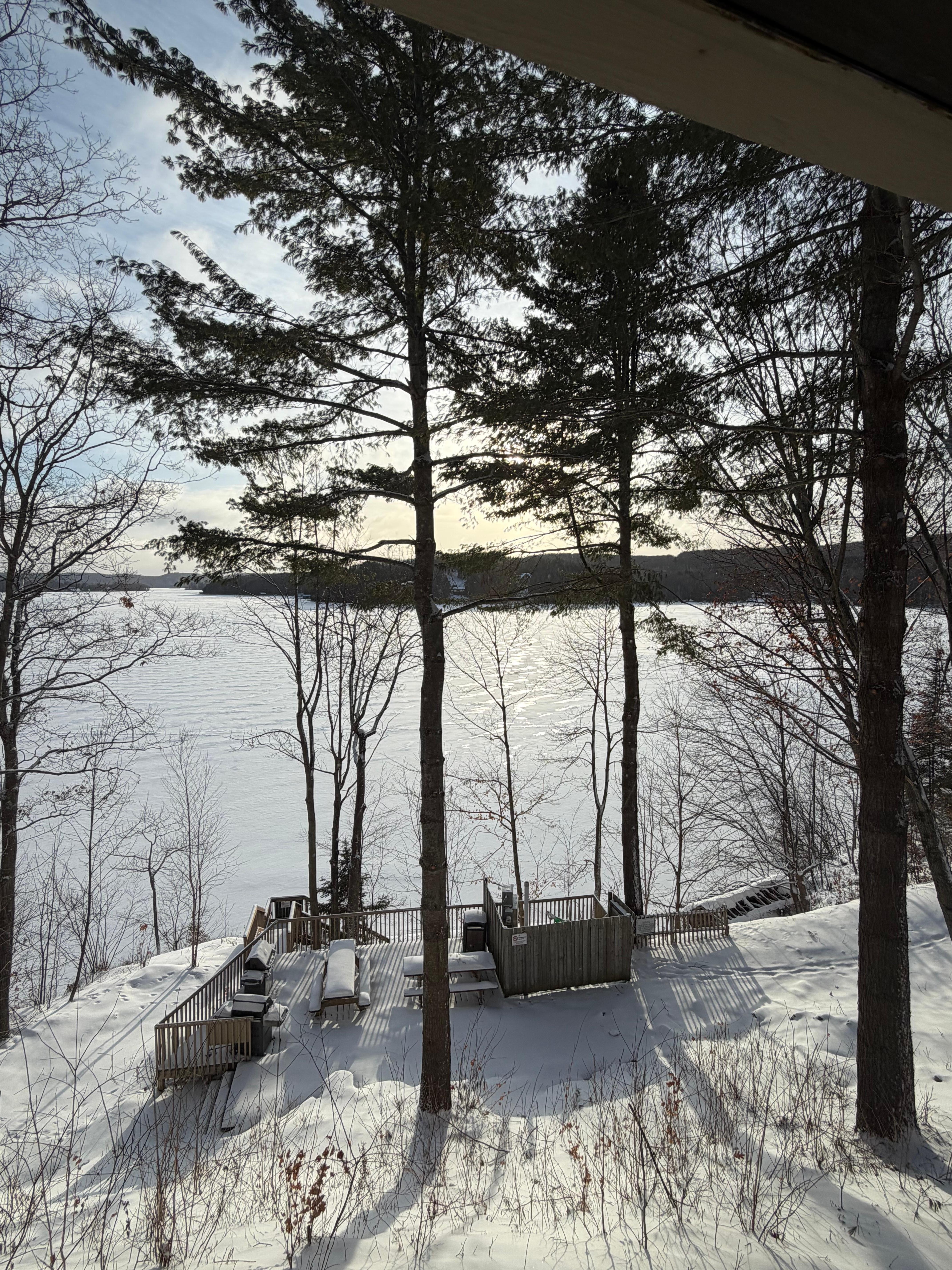 Cheminées à gaz dans le salon et la chambre des maîtres. La vue depuis le salon est magnifique - une vue complète du lac Pen depuis le balcon de l'écran.