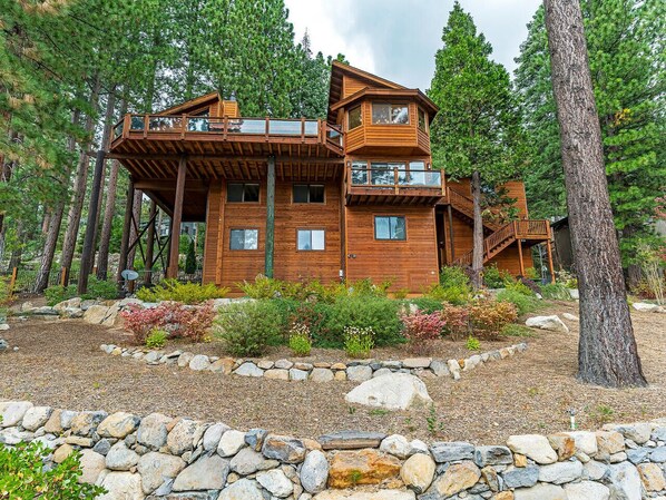 Superbe vue sur le lac depuis chaque chambre! Cette moyenne basse home / d'élévation est le cadre idéal pour vos vacances en famille. Pâtés de maisons de la plage ... minutes des remontées mécaniques ... et à une courte distance du centre de la ville. Les pistes cyclables sont juste une demi-pâté de maisons. Le salon / espaces de divertissement, ainsi que la cuisine du chef sont idéalement situés sur le niveau principal de cette propriété extraordinaire. Il comprend un salon confortable et joliment meublée avec cheminée en pierre et d'une télévision grand écran plasma. Adjacent à ce est la salle de billard avec une table de billard Connelly, Bar, un coin salon et une autre cheminée en pierre. La cuisine avec des planchers en ardoise et une ardoise / table en bois siège construit sur mesure 10 personnes confortablement. Il ya même deux lave-vaisselle pour gérer les charges lourdes! Profitez du barbecue de la terrasse arrière que vous regardez le coucher de soleil sur les montagnes et le lac. Au niveau suivant, sont deux suites de chambre de maître avec salle de bains privative, de lits king size, TV plasma s et grand placard et tiroirs. Tous les meubles dans toute la maison (y compris les matelas) sont neuves et décorées dans le thème de la loge. Le niveau inférieur contient trois chambres. Un lit queen, deux lits jumeaux et un ensemble de lits superposés rustique. En outre, il est un repaire confortable avec TV Plasma. La maison est parfaitement réglé pour divertir les adultes à l'étage et permettre aux enfants leur propre espace en bas. La maison est située sur un grand terrain et a beaucoup d'espace en plein air ou de détente ou en jouant.