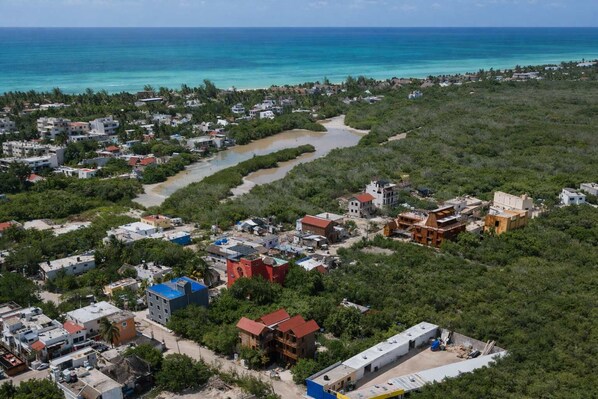 Close enough to walk in a few minutes to the center of the island, the best restaurants, stores, bars and the beach (everything is 5, 7 and 10 blocks away.