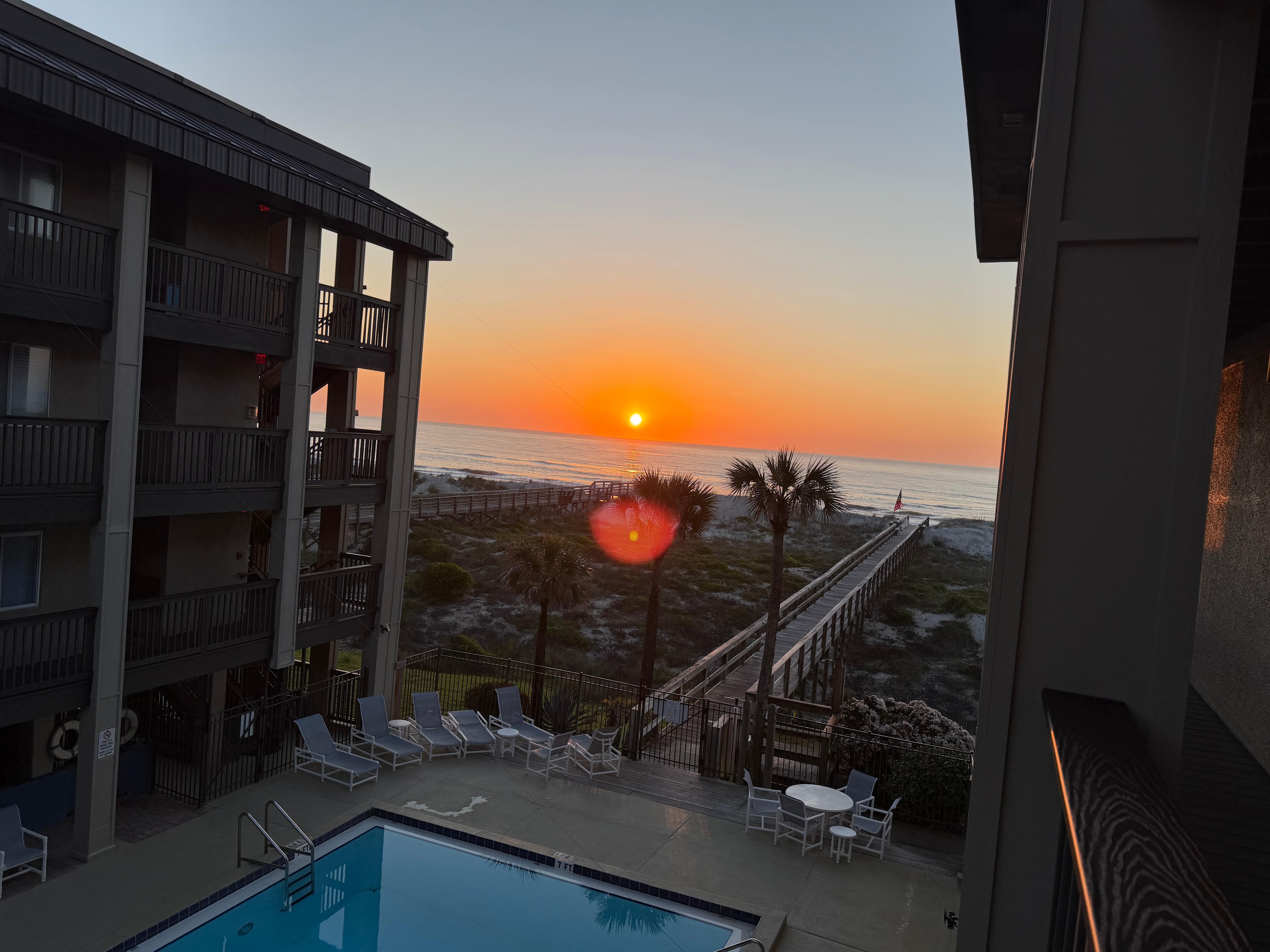 This unit’s porch has a lovely view of the ocean and private access to the beach. It was clean and had what we needed for a few days away. It was also nice to have parking on the grounds.