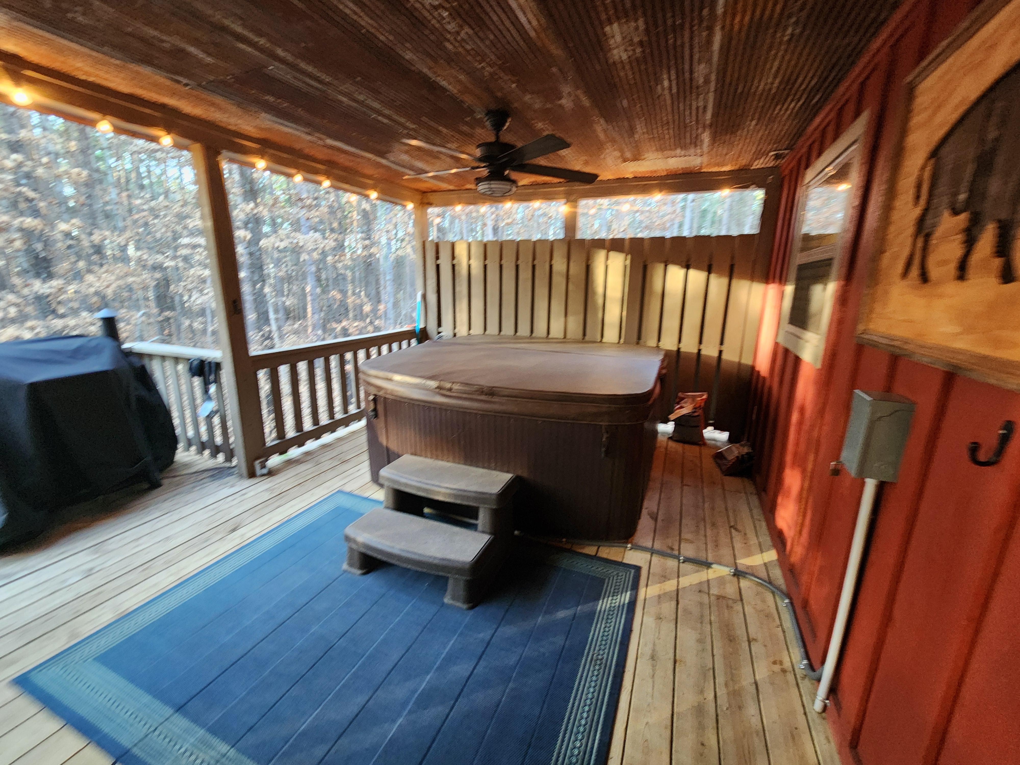 The cabin is amazing! The attention to detail is incredible. The owner has thought of everything. This is the best VRBO we have ever stayed in. The back porch and hot tub was the best. The owners kindness and communication is top notch. And the area is absolutely beautiful.