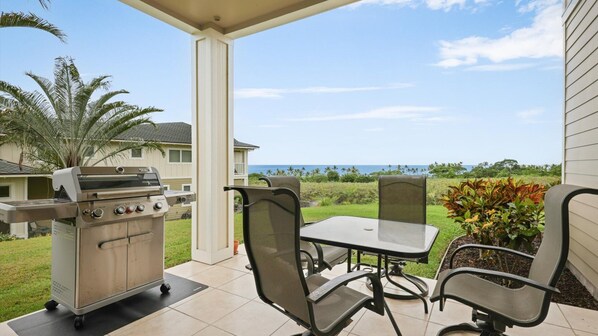 1st floor Lanai has grills, grass grounds and ocean views
