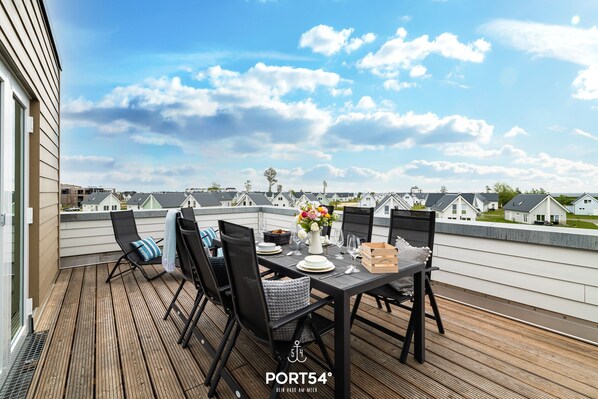 From the living area, you have direct access to the large sun terrace, where you can enjoy a wonderful view of the Baltic Sea. Equipped with garden furniture and an electric Weber grill, you can spend many enjoyable hours here.