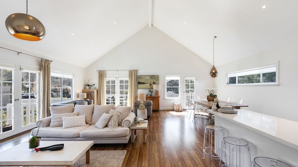 This house works well for family of multiple generations and dogs. Well equipped, light filled house, close to everything.