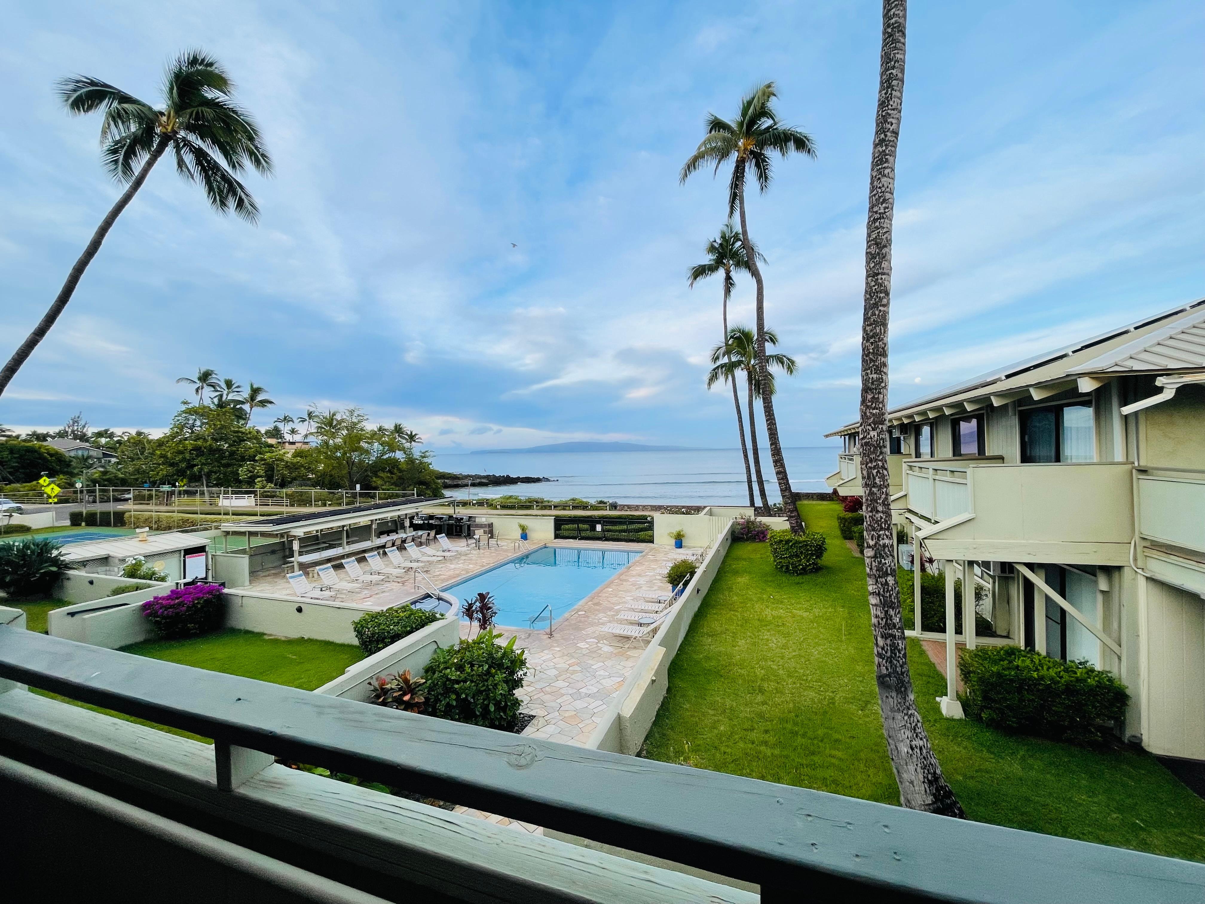 L'unité # 208 a une vue DIRECTE et dégagée de la meilleure plage de surf de South Maui (COVE PARK) et de la piscine face à la plage. Des vues incroyables de ce condo au deuxième étage en regardant les surfeurs à Cove Park, profitez des couchers de soleil spectaculaires.