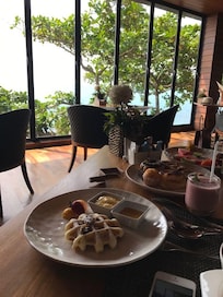 - Le petit déjeuner buffet coûte environ 1000 THB par adulte et environ 500 THB par enfant.