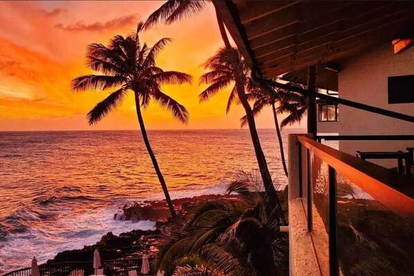 Aloha and welcome to Poipu Shores 302B! The fabulous rare 3 bedroom end-unit condo overlooking the shimmering Pacific Ocean directly oceanfront! Relax on your double lanai and watch the turtles all day long, dolphins playing, beautiful sunsets in the evening, whales migrating during the winter months and frequent rainbows. Poipu Shores 302 B is Kauai's premier oceanfront complex with unparalleled views and a heated swimming pool over the ocean!