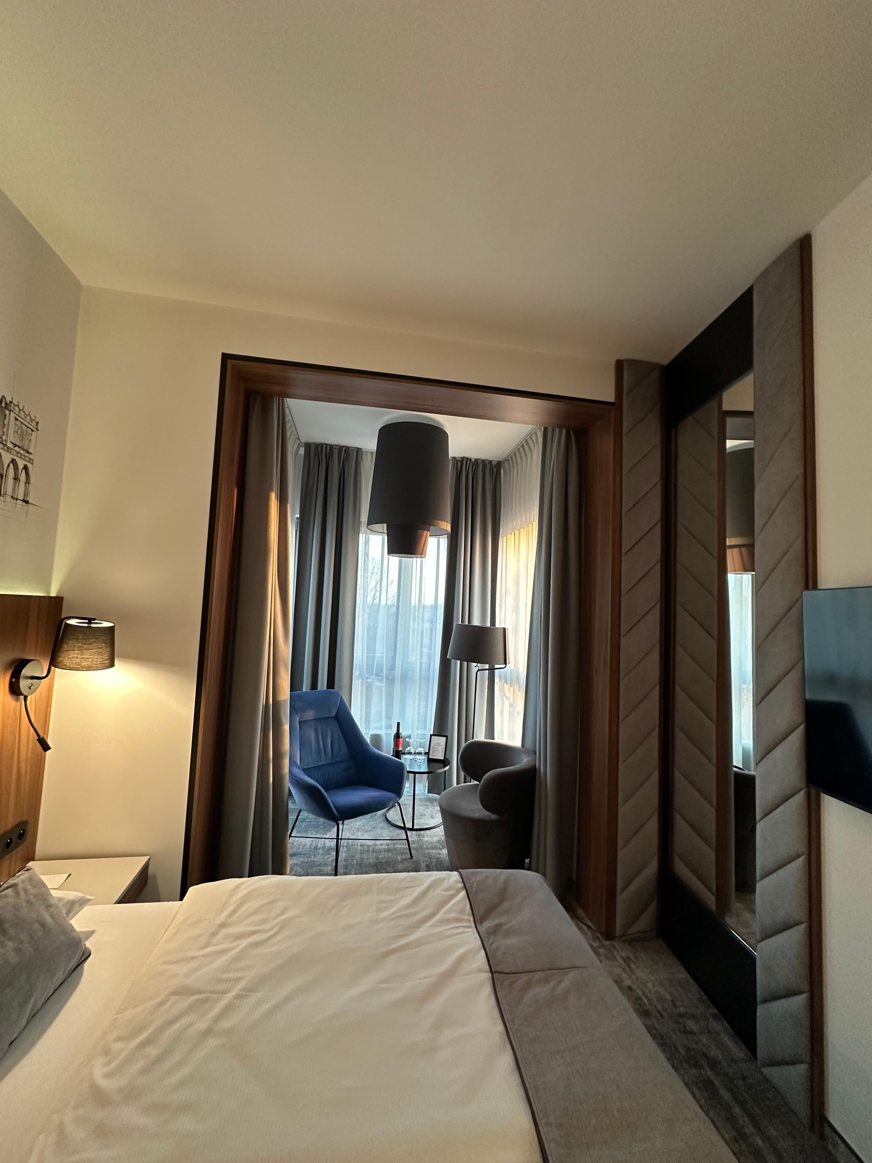 Ottimo soggiorno e camera premium spaziosa. Nonostante fosse di fronte alla stazione del treno non si sentiva nulla. Peccato per il set di cortesia mancante, niente accappatoio e niente pantofole. Colazione buona e staff cordiale
