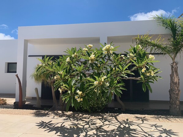 Beautiful house and gardens with a massive and decadent pool. Situated on the outskirts of Villaverde and more inland This property provided us with everything we needed for a chilled and relaxing break. Peace and quiet with fantastic picture windows framing mountain and sea views. Although the house sleeps many (8) it was just the two of us. If there had been more people, there is still the space for all to chill out with both sides of the property having bedrooms and bathrooms. There was also a double with ensuite upstairs with access to the roof terraces. There was also parking for several cars There are two supermarket and a few restaurants in Villeverde. Easy drive from here into Lajares (3 x French patisseries, supermarket and multiple eateries), Corralejo and El Cotillo The latter two have fantastic beaches and many places to eat and shop Reluctantly shut the door. Both of us felt we could easily have stayed longer