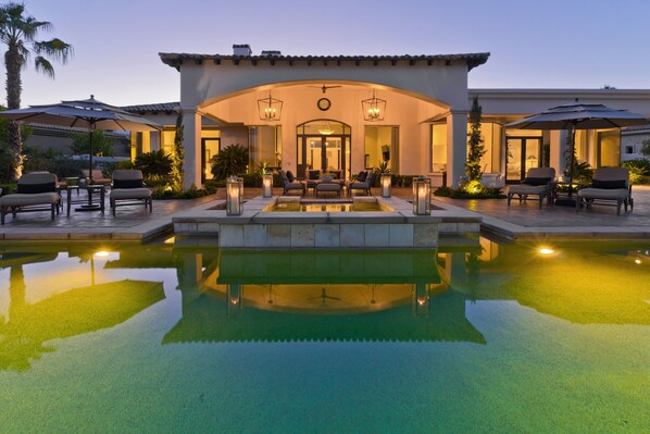 Il y a de nombreux coins salons à l'extérieur qui sont l'endroit idéal pour s'asseoir et regarder les golfeurs sur le 17e trou du parcours de golf Greg Norman. Il y a une pergola personnalisée sur la zone du barbecue qui a un barbecue à gaz intégré et un coin salon avec quatre tabourets de bar. La table à manger extérieure peut accueillir jusqu'à 8 à 10 personnes pour dîner au restaurant. Un foyer au gaz extérieur peut également accueillir jusqu'à six personnes.