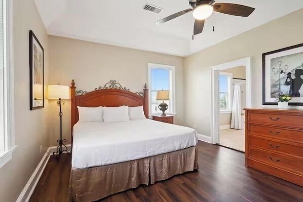 ⭐ BEDROOMS ⭐ Wake up in your bright second floor king suite, elevated on pilings above the bayou community. Soft bedding, extra pillows and blankets invite lazy mornings before wandering down for breakfast or out to explore the wetlands. At night, sink into the king bed while your favorite show streams in the living room.