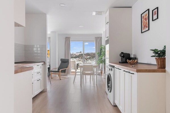 This wonderful apartment with an exceptional location is ideal for families and friends. It has an exquisite decoration where every detail has been taken care of, capacity for 4 people and two bedrooms. The main bedroom has a double bed and the second bedroom has two single beds. Both have air conditioning and storage space. A spacious living-dining room designed for relaxation, with 43’ Smart TV, gives direct access to the imposing terrace of the flat with views of the Atlantic Ocean and the city of Las Palmas. This space becomes the ideal place to relax, enjoy the sun and a good lunch. The property has a good distribution, with two complete bathrooms and a kitchen integrated in the living-dining room equipped with everything necessary. In addition, the building in which it is located has a lift for greater comfort. Its magnificent location is surrounded by all the necessary services, including leisure facilities, restaurants and supermarkets, as well as the beach of Las Alcaravaneras, just a few minutes' walk from the property.